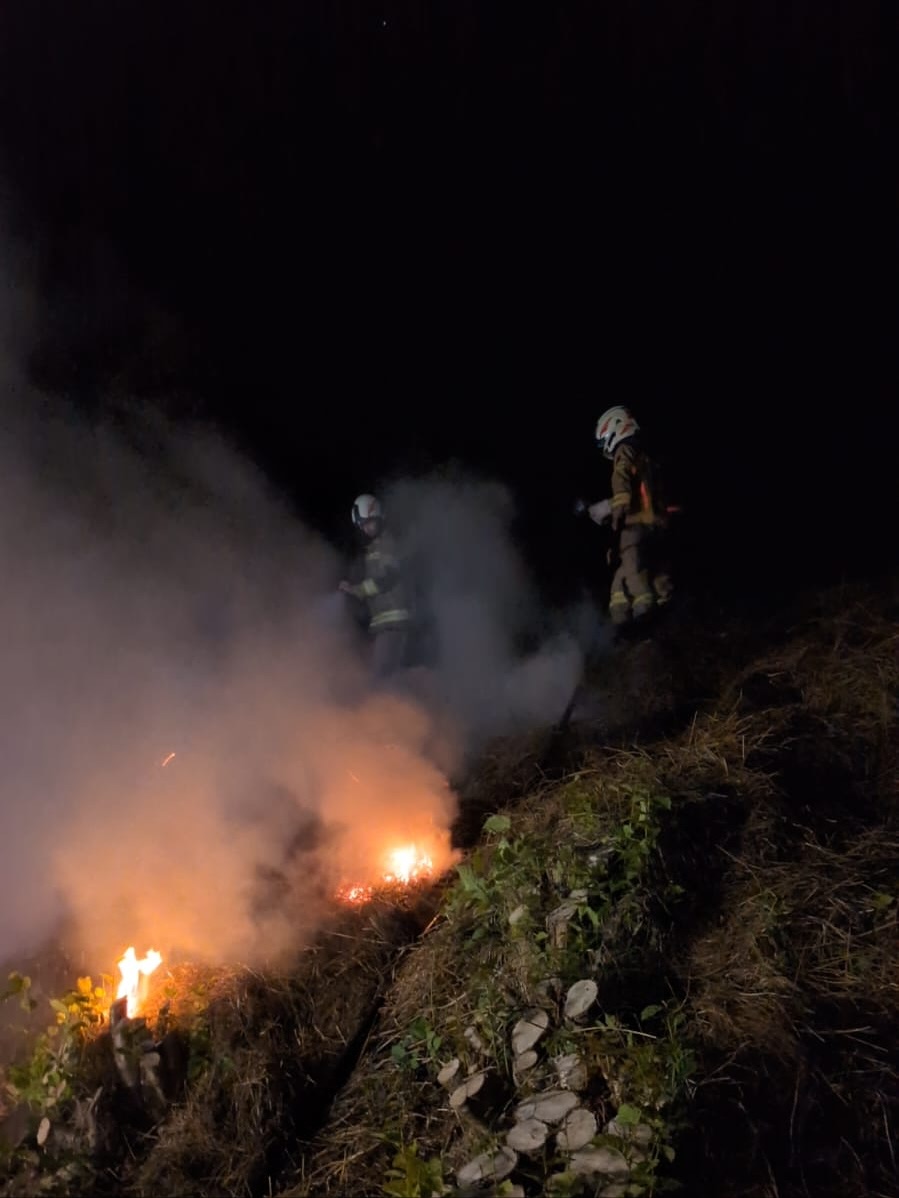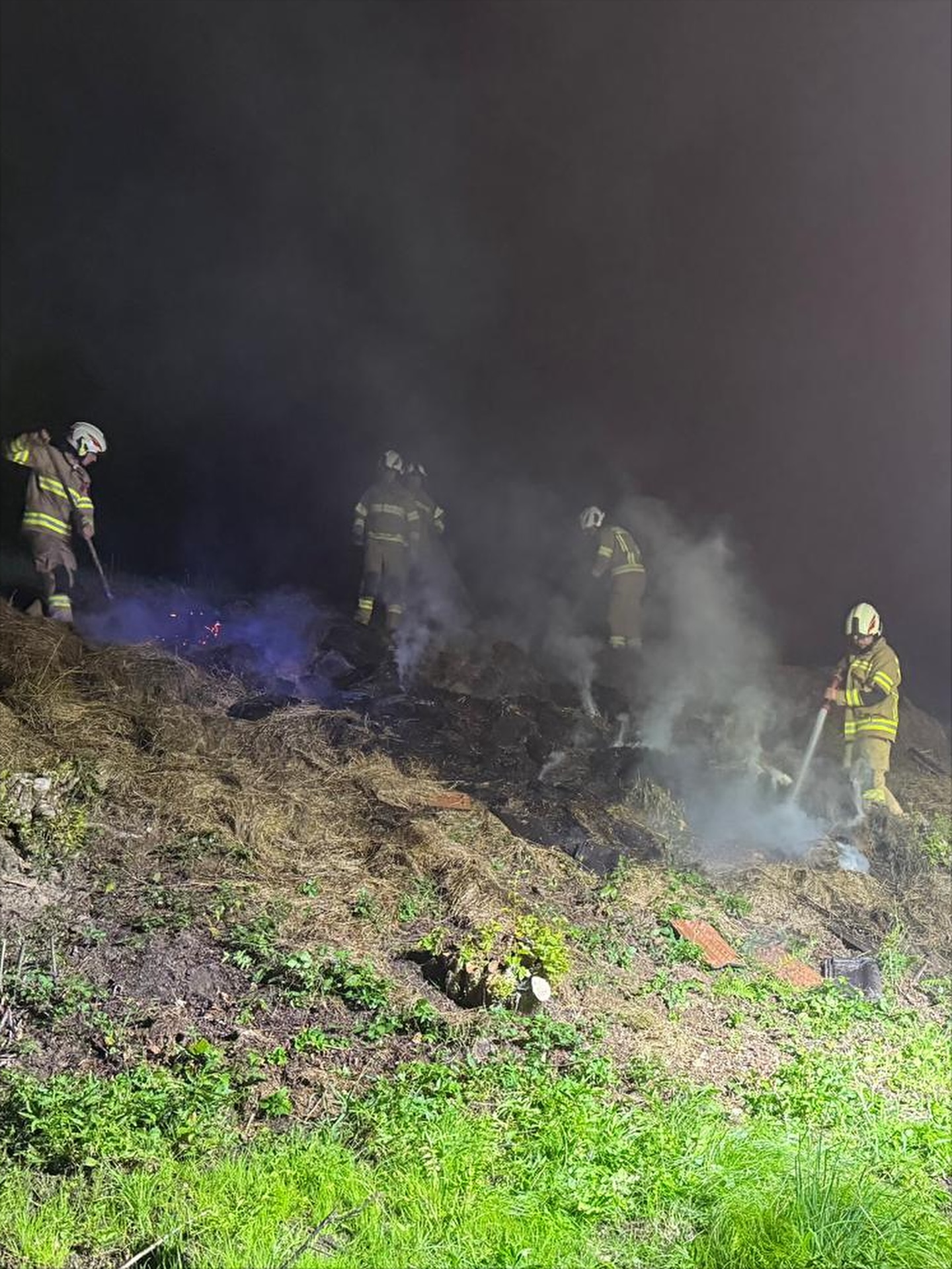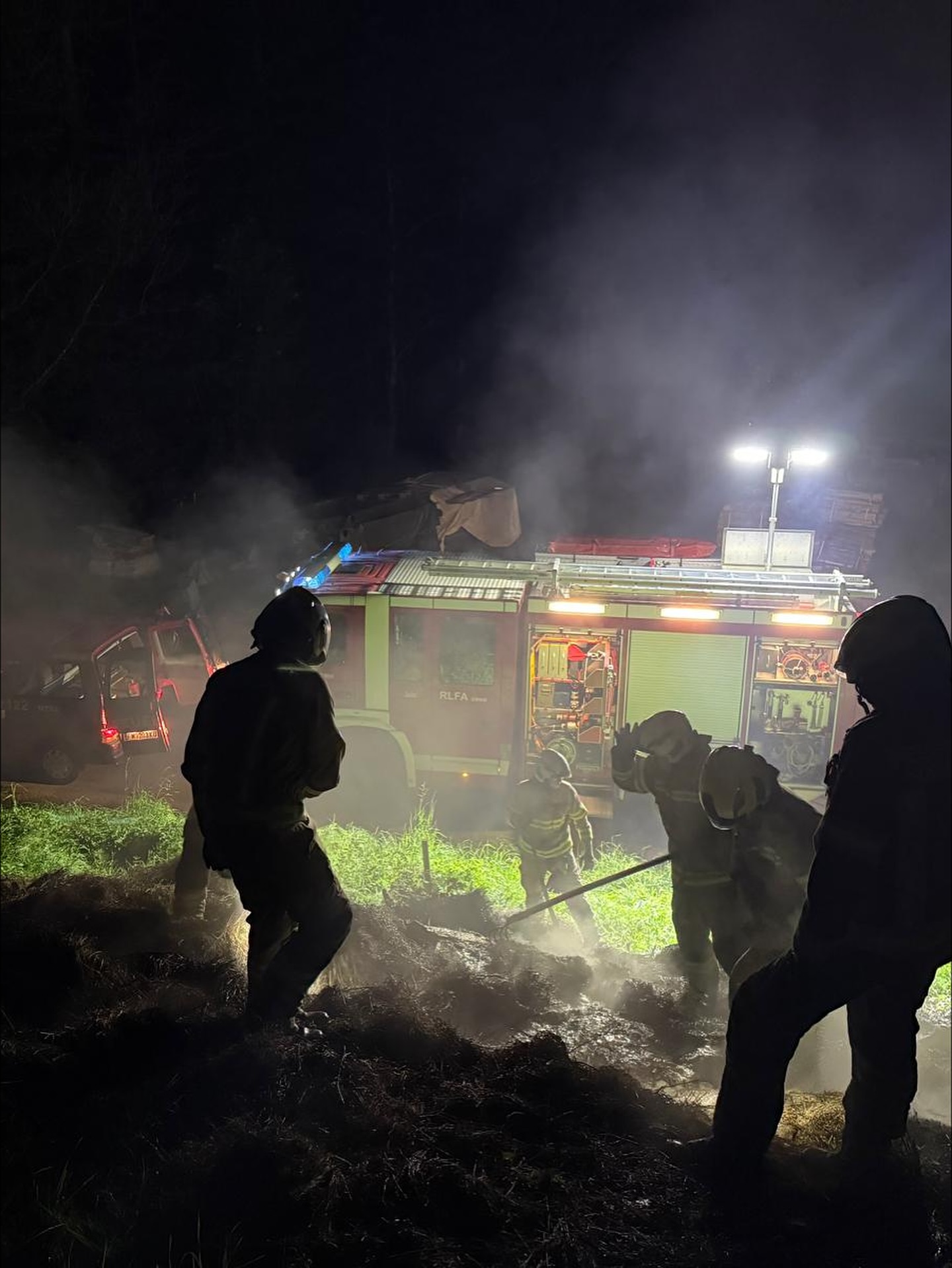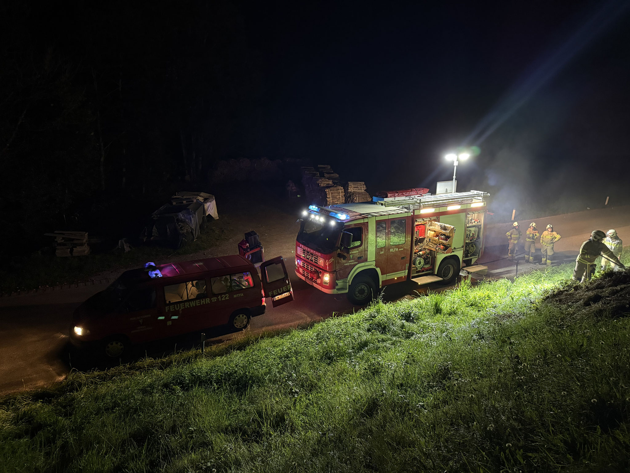 Vor Ort stellte sich heraus, dass eine etwa 80 m² große Wiesenfläche (altes abgelagertes Heu) brannte. Der Brand wurde umgehend mit Schanzwerkzeug und Wasser bekämpft. ⛏️🧑🏼🚒